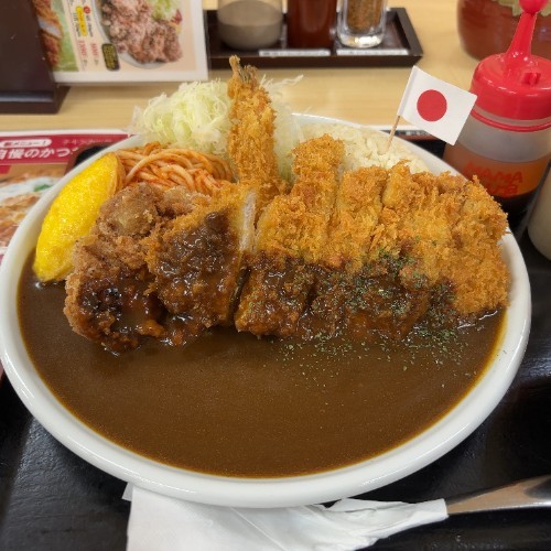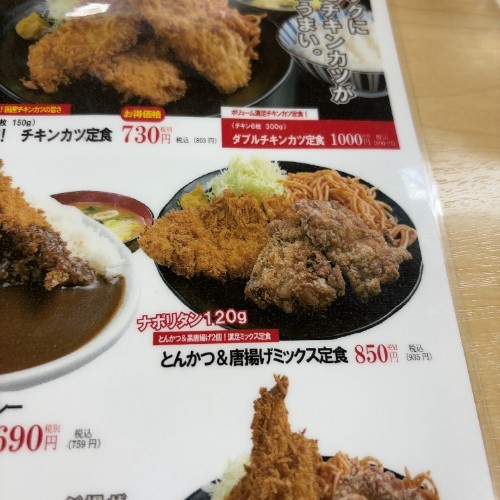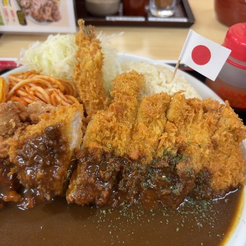 ナポリタン・とんかつ・から揚げ・エビフライ・オムレツ・カレーライス・きゃべつ・バターライス